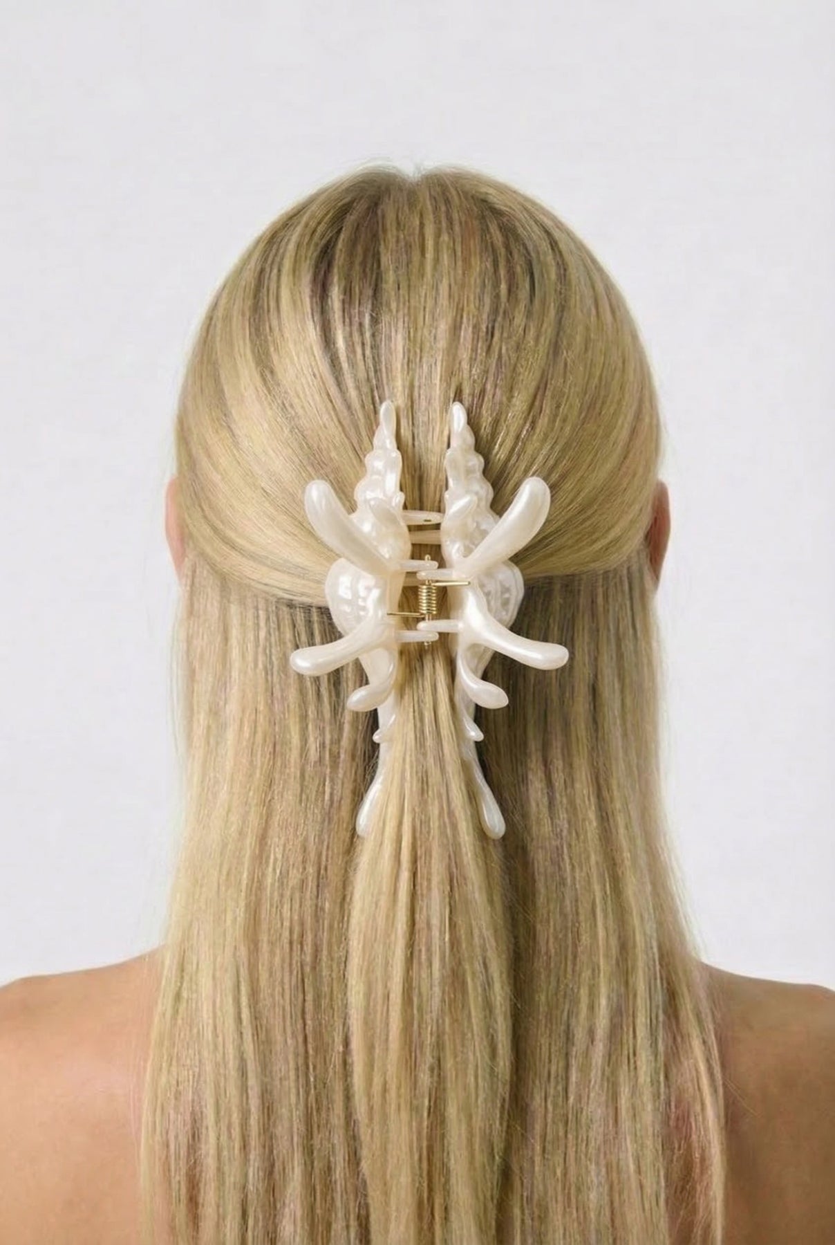An easy way to make your hair look styled without trying too hard. This shell–inspired hair clip features a glossy, seashell finish with soft dimension that catches the light beautifully. Lightweight but secure, it holds hair comfortably while adding a subtle coastal touch to everyday looks.