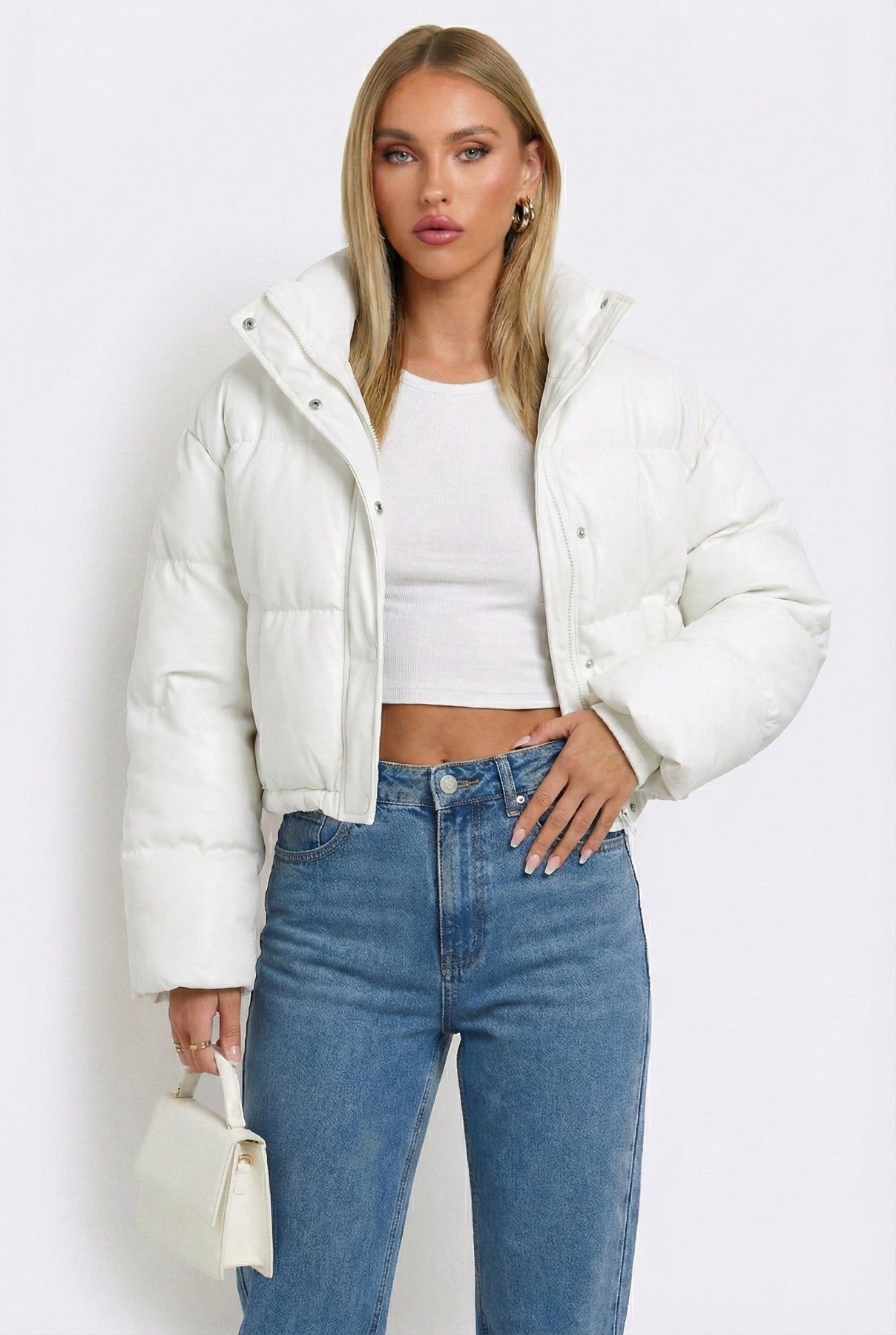 Cold weather, meet your match — the Frostline City Puffer Jacket. This cropped puffer is where warmth meets street style, giving you that perfect oversized-meets-fitted silhouette. Available in crisp winter white or sleek jet black, it’s the layer that goes with everything — from athleisure sets to night-out looks.