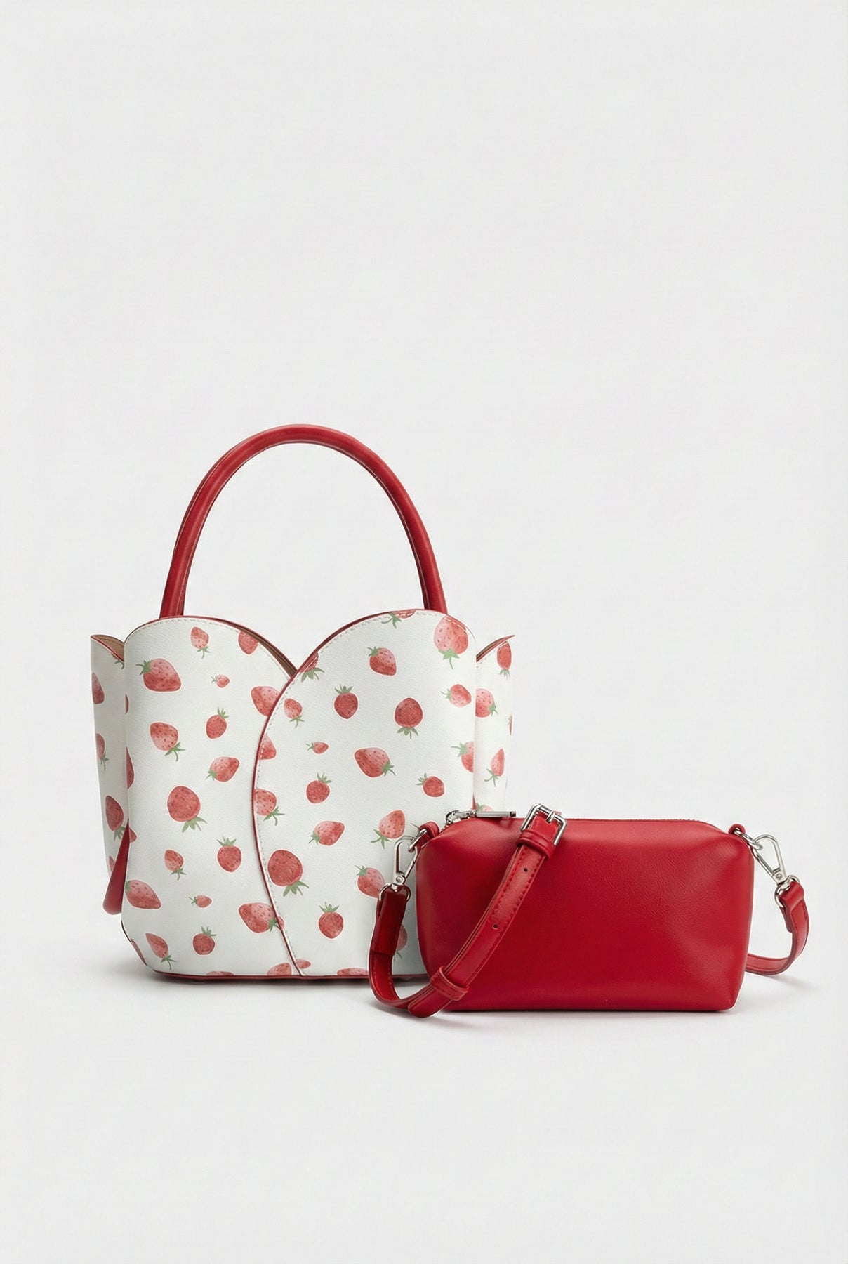 - Color: White with strawberry print