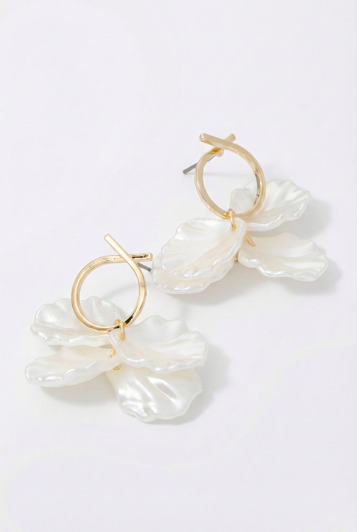 Soft shine, sculptural petals, and just enough movement. These gold hoops feature luminous mother-of-pearl flower drops that catch the light beautifully without feeling overdone. Feminine, fresh, and easy to wear — they bring a quiet statement to everyday looks and pair effortlessly with linen, denim, or dresses.