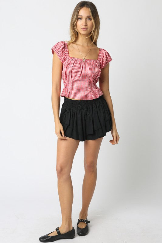 Designed with soft ruffled cap sleeves, an elastic neckline, and a smocked waist, it creates that perfectly fitted, subtly sculpted silhouette everyone loves. The linen-cotton blend feels lightweight and breathable — ideal for warm days, weekend plans, and everything in between. Pair it with denim, a mini skirt, or white shorts for the cutest daytime look.